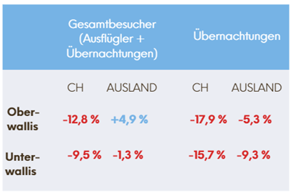 Die Zahlen zeigen regionale Unterschiede zwischen dem Ober- und dem Unterwallis, insbesondere bei den ausländischen Tagesgästen.