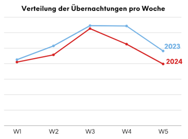 Die Konzentration der Kalender auf eine einzige "strategische" Woche dürfte sich negativ auf die Gesamtbesucherzahlen ausgewirkt haben. Diese Konstellation schadete vor allem den Übernachtungen. Zum Vergleich waren 2023 die Besucherzahlen und Übernachtungen gleichmässiger über die Karnevalsferien verteilt.