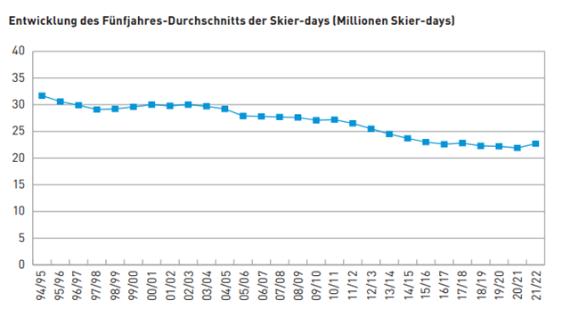 Das weisse Gold hat ein grosses Gewicht in der Alpenwirtschaft und die Seilbahnen sind die Lunge der Skigebiete. Der Winter 2020-21 brachte den Schweizer Seilbahnen 1,2 Milliarden Franken ein (Seilbahnen Schweiz, 2022b), eine nicht zu unterschätzende Einnahme, wenn es darum geht, den Übergang zu finanzieren.