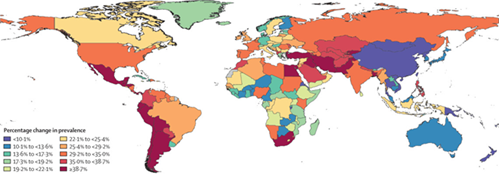Weltweit ist die Prävalenzrate depressiver Störungen in den einzelnen Ländern zwar ungleichmässig gestiegen, aber in allen Regionen der Welt hat die Rate zugenommen.