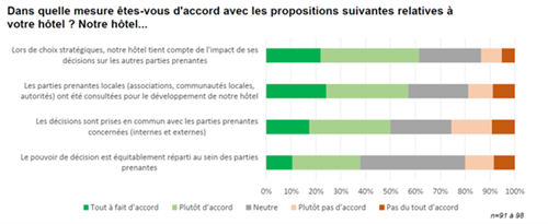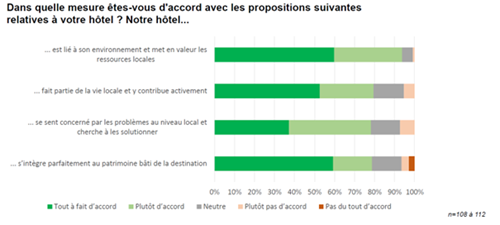 Hotels in Ortschaften mit weniger als 10.000 Einwohnern unterstützen stärker soziale, kulturelle und umweltbezogene Initiativen. Es ist auch zu beachten, dass die Sorge um Kunden und Mitarbeiter vorhanden ist, aber die kollaborative Dimension innerhalb des Unternehmens und der Destination noch nicht gut adressiert ist.