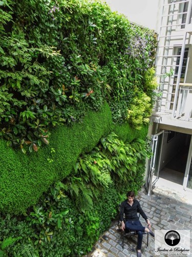 Grüne Wand im Hotel Jules et Jim in Paris. Quelle: https://www.jardinsdebabylone.fr