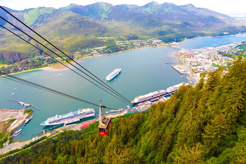Etwa 1,5 Millionen Touristen kommen jedes Jahr mit Kreuzfahrtschiffen nach Juneau, um die Hauptattraktion des Ortes zu besichtigen: den Mendenhall-Gletscher, der seine Eisberge ins Meer wälzt. Ein garantiertes Spektakel. Um all diese Touristen anzulocken, müssen fossile Brennstoffe verbrannt werden, was gerade zu seinem Rückgang beiträgt.