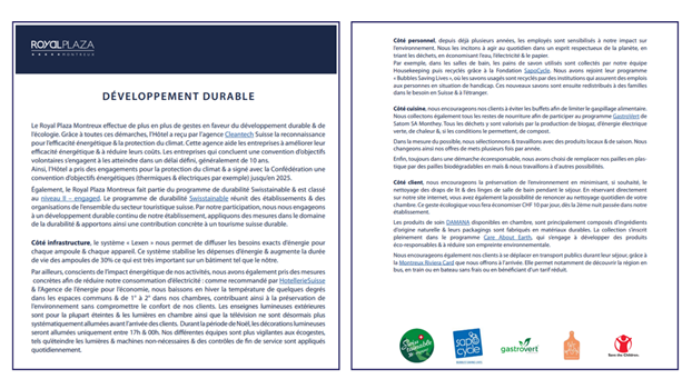 Das Hotel Royal Plaza in Montreux ist ein Beispiel für eine solche Initiative: