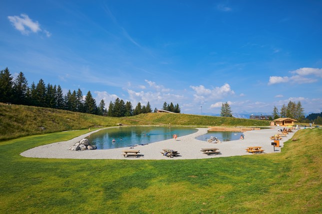 L’entreprise Bioteich, maître d’œuvre de l’ouvrage, a conçu un système qui permet la régénération naturelle de l’eau. Selon Dominique Beuchat, directeur de l’entreprise, les lacs sont conçus de telle manière à ce que l’eau puisse également être utilisée en cas d’extrême nécessité durant l’été, sans que cela pose des problèmes pour les plantes Par exemple, grâce à un système par débordement, la pataugeoire et la filtration peuvent fonctionner en circuit fermé. Selon Dominique Beuchat, les attentes ont été dépassées en ce qui concerne l’attractivité touristique puisque 100 visiteurs par jour étaient attendus contre 200 à 300 personnes par jour en réalité. L’aménagement de cette infrastructure a été rendu possible par un fonds spécial du canton de Vaud, appelé fonds « Vivaldi », destiné à soutenir des démarches locales pour développer le tourisme « 4 saisons ».