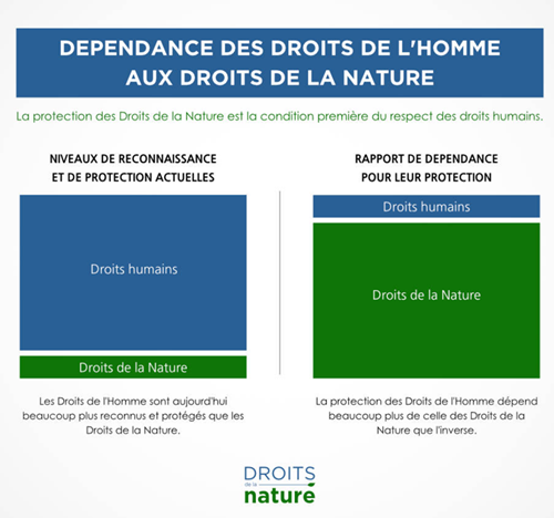 Par conséquent, le changement qui opère dans le champ juridique fait dire à des penseurs des droits de la nature que la nature entre progressivement dans le champ social. Cette intégration a été plus précoce dans les pays où la nature n'est pas dissociée du reste de l’écosystème, du moins pas dans les communautés autochtones de ces pays (par exemple chez les Huni Kuin d’Amazonie ou les Nenets de Yamal). Pour ces populations vivant en symbiose avec leur milieu, les droits de la nature sont intangibles et inaliénables. Mais alors pourquoi parler d’intégration d’entités que l’on postule unies ? C’est qu’est intervenu un changement exogène. On a pu observer en effet que les milieux de vie de ces communautés autochtones se dégradant, ces peuples autochtones se sont peu à peu retrouvés soumis à des fonctionnements étrangers. En signant leur dépendance aux ressources externes de leur système (semences, engrais, mais aussi technologies, …), ils ont dû abandonner jusqu’à leurs structures familiales et leurs rites. Les cosmogonies ont été mises à mal. Chasse et lieux de sépulture ont évolués vers une autre réalité. Pour se défendre des projets industriels, ces communautés ont donc adopté les subtilités juridiques occidentales, tout en éveillant les consciences quant à la nature anthropocentrée de ce droit puisqu’il a fallu intégrer les droits de la nature pour garantir les droits humains. Et donc « renoncer à penser l’altérité des humains et des autres êtres que les humains » pour reprendre les mots critiques de la juriste Sarah Vanuxem.