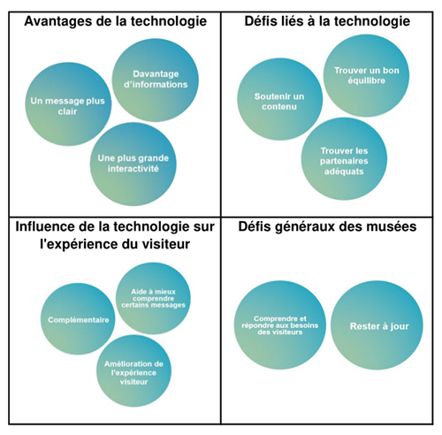 Pour la majorité des institutions, bénéficier d’outils technologiques est indispensable afin de créer une valeur ajoutée pour les visiteurs. En effet, la technologie permet de transmettre un message de manière facilitée et de présenter une quantité d'informations dans un espace limité, laissant au visiteur la liberté de choisir le contenu à visionner. Par ailleurs, la technologie permet aux professionnels de modifier et d’approfondir aisément le contenu de leur offre, leur donnant encore plus de flexibilité.